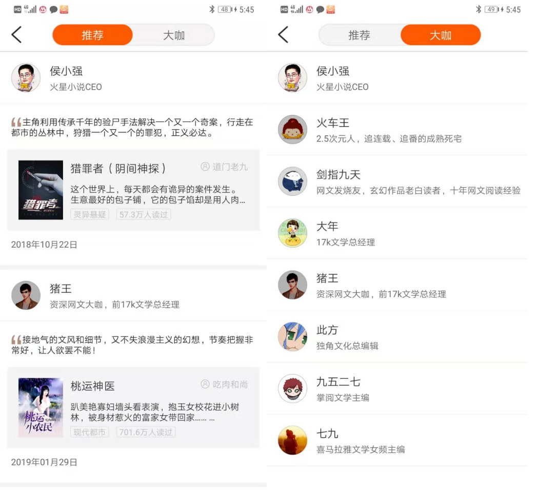 当下网络文学作者多达1400万,必看小说在提供AI算法推荐长内容外,还邀请了五十余名业界知名大V和行业专家入驻,为每本书提供权威专业的精彩点评,为用户提供更多元化人性化的参考。用户可以根据专业人士的评论来参考要不要看一部作品,多种推荐形式结合,为用户推荐高质量、符合个人喜好的书籍,更多维的解决用户冷启动问题,留存率远远高于移动阅读APP的平均水平。