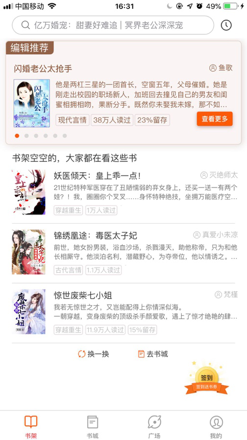 不喜欢就“换一换”是必看小说非常显著的一个特征,在小说推荐信息流里“换一换”按钮无处不在。一方面这是因为必看小说用AI推荐替代传统编辑人工推荐,所以更换效率要远强于传统软件。另一方面,这也体现了必看小说围绕用户体验为核心的产品理念,用户可以在几十处小说推荐信息流进行“换一换”操作,大大的提升了用户找到自己喜欢的小说概率。